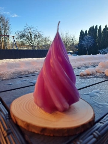Svece pieejama dažādās krāsās ar un bez aromāta. Izgatavota no parafīna. Ja vēlies vienkrāsainu eglītes sveci - izvēlies konkrēto krāsu. komentāru laukā ieraksti vēlmes attiecībā uz aromātu.